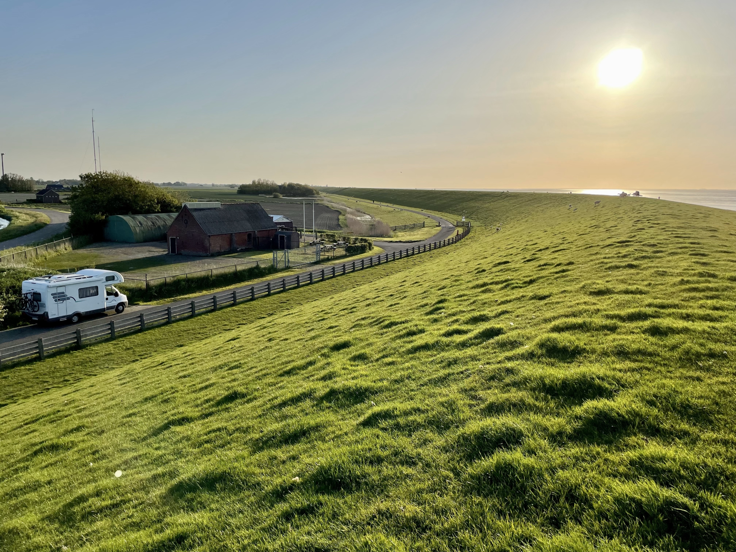 Heute setzen wir unsere Reise fort und machen uns auf den Weg nach Moddergat. Ursprünglich hatten wir geplant, das geschichtsträchtige Fischerdorf nur kurz zu besichtigen und weiterzufahren. Doch als wir diesen Stellplatz direkt am Deich entdeckten, konnten wir einfach nicht widerstehen.