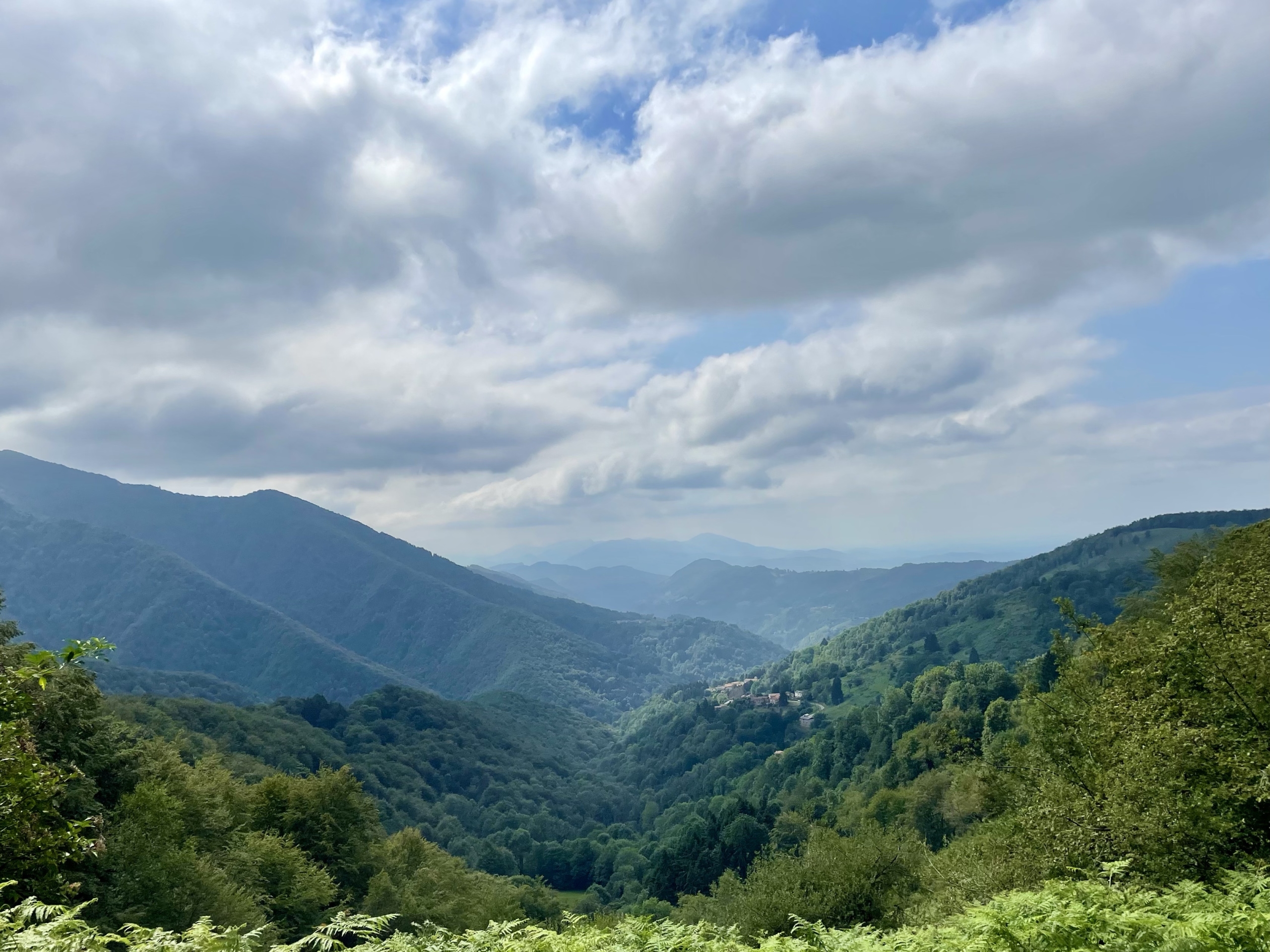 Wir erreichen die Pyrenäen. Das riesige Gebirge ⛰️ erstreckt sich über etwa 430 Kilometer und wird mit den diversen Höhenunterschieden sicherlich eine Herausforderung werden. Die fantastischen Landschaften zwischen Frankreich 🇫🇷 und Spanien 🇪🇸 sind geprägt von hohen Bergen, tiefen Tälern, glitzernden Bergseen, plätschernden Bächen, dichten Wäldern und vieles mehr. Auch der kleine Zwergstaat Andorra, der vorwiegend für seine Steuervorteile und Einkaufsmöglichkeiten bekannt ist, liegt hier verborgen. Trotz der Hitze sind die Kühlerlüfter von unserem treuen Floki bisher nicht angesprungen und die Temperaturanzeige bewegt sich auch keinen Millimeter. Um sicherzustellen, dass alles einwandfrei funktioniert, steuern wir einen Aussichtspunkt in etwa 1400 Metern Höhe an. Mit gemächlichem Tempo starten wir unsere Fahrt. Floki offenbart erneut seine Verlässlichkeit und zeigt, dass er auch für diese Herausforderung gewappnet ist und bringt uns sicher nach oben.